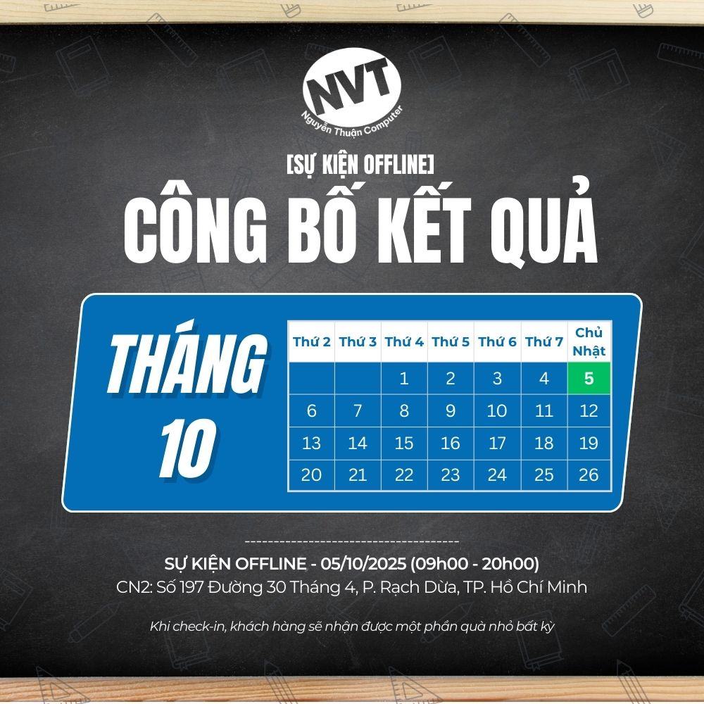 Khi kết thúc chương trình, số phiếu sẽ được tổng hợp lại và bốc thăm ngẫu nhiên thông qua hình thức livestream trên nền tảng TikTok / Facebook Nguyễn Thuận Computer vào ngày (dự kiến) 05/10/2025 để công bố những khách hàng may mắn nhất.