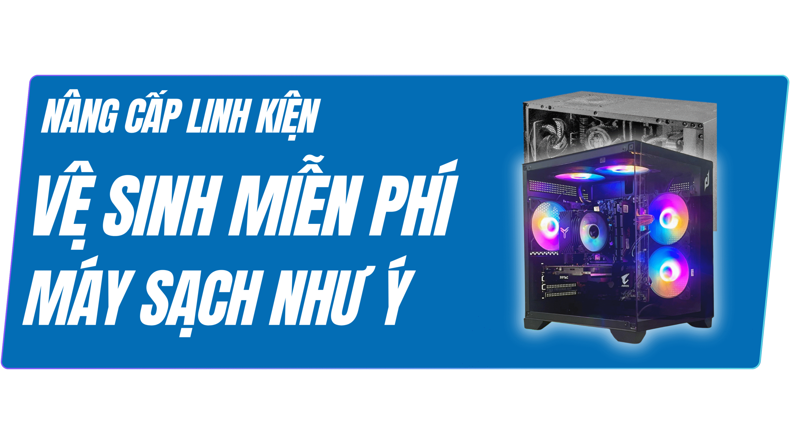 Khi nâng cấp bất kỳ linh kiện nào tại cửa hàng, bạn sẽ nhận được một món quà: Dịch vụ vệ sinh PC hoàn toàn miễn phí từ đội ngũ kỹ thuật viên tận tâm của chúng tôi.