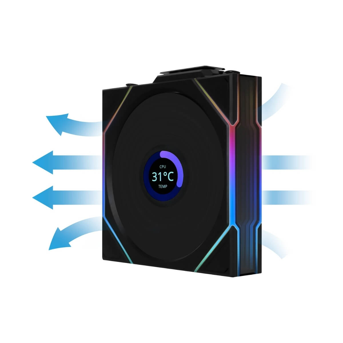 Tích hợp màn hình LCD nhỏ gọn trên từng quạt, UNI FAN TL WIRELESS REVERSE cho phép hiển thị nhiệt độ, tốc độ quạt hoặc các hình ảnh cá nhân hóa đầy sống động, tạo nên điểm nhấn nổi bật và phong cách riêng biệt cho dàn máy.