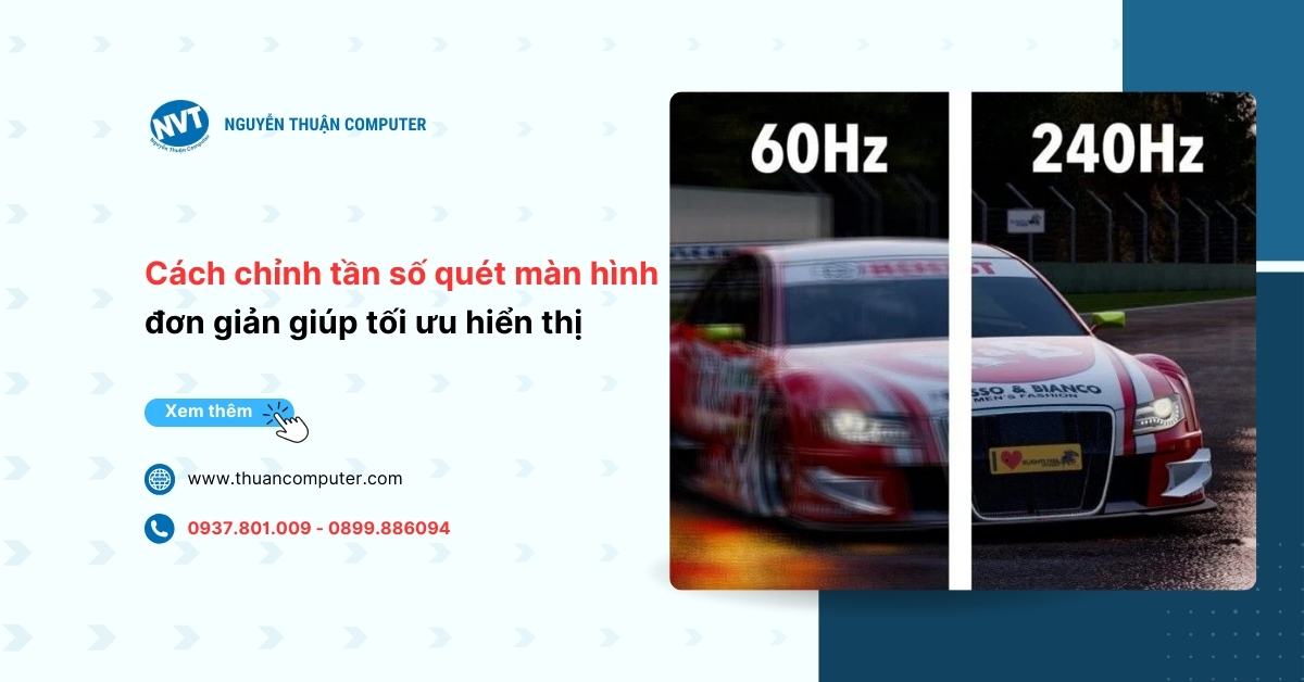 Tần số quét màn hình ảnh hưởng trực tiếp đến độ mượt mà và trải nghiệm hình ảnh khi sử dụng máy tính. Việc điều chỉnh tần số quét phù hợp giúp giảm hiện tượng giật lag, nhấp nháy và cải thiện chất lượng hiển thị. Vậy cách chỉnh tần số quét màn hình như thế nào? Nguyễn Thuận Computer sẽ chia sẻ cách đơn giản giúp bạn tự thực hiện ngay tại nhà nhanh chóng nhất.