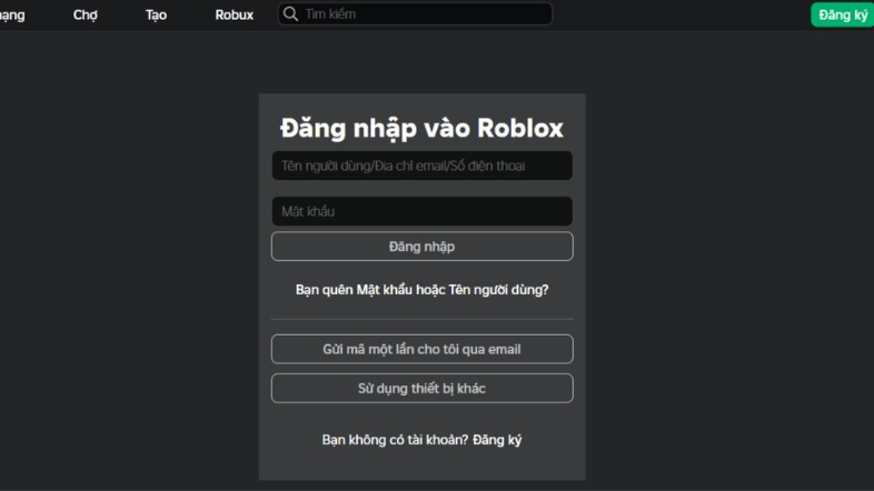 - Bước 2: Đăng nhập: Đăng nhập vào tài khoản Roblox của bạn. Nếu chưa có tài khoản, bạn cần đăng ký.