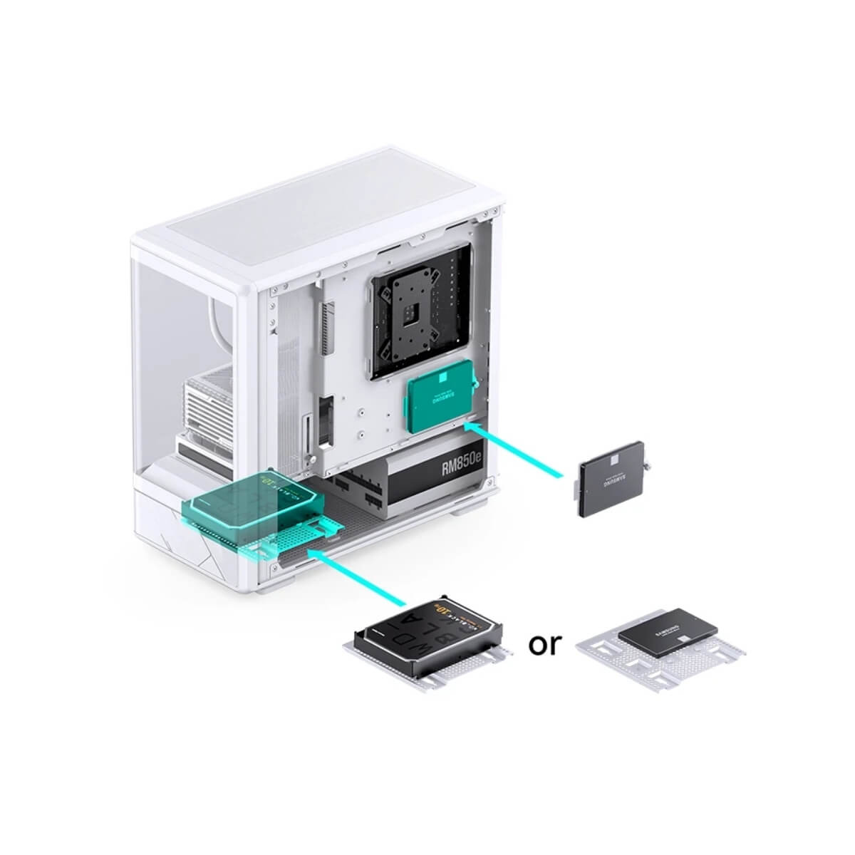 Jonsbo D200 hỗ trợ linh hoạt cho người dùng cần lưu trữ dữ liệu với khả năng gắn 1 ổ SSD 2.5″ + 1 ổ HDD 3.5″ và thêm 1 ổ SSD 2.5″. Phù hợp cho cả nhu cầu làm việc lẫn giải trí chuyên sâu.