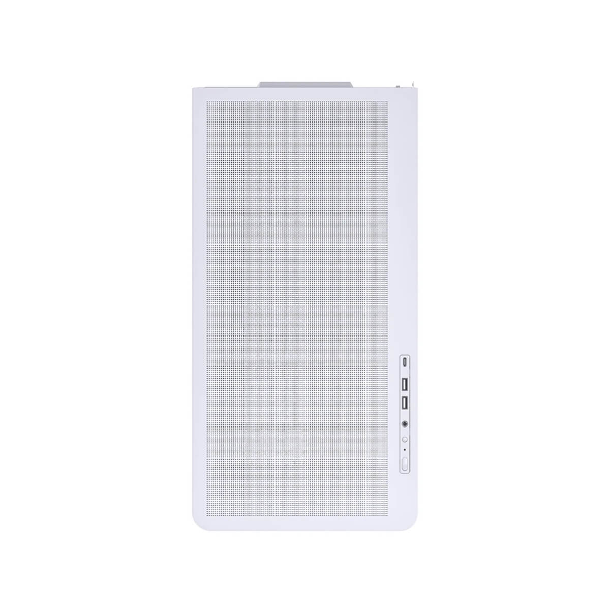 Mặt trước của Case Jonsbo D300 White (mATX) được trang bị đầy đủ các cổng kết nối cần thiết cho người dùng hiện đại: