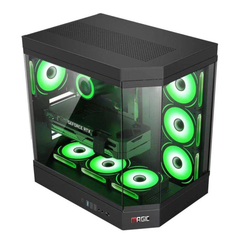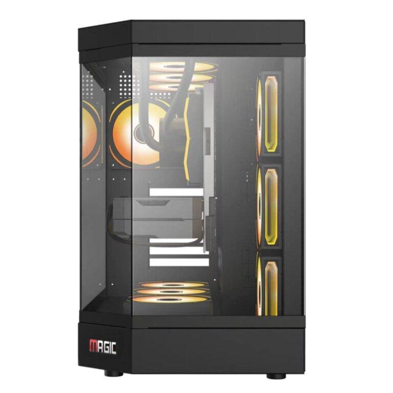 Vỏ case Magic Vila Ultra Pro Black (ATX) gây ấn tượng mạnh ngay từ cái nhìn đầu tiên nhờ vào thiết kế hiện đại và sang trọng. Mặt trước của vỏ được làm bằng kính cường lực, tạo nên vẻ đẹp tinh tế và đẳng cấp. Màu đen huyền bí càng làm tăng thêm sự cuốn hút cho sản phẩm, phù hợp với mọi không gian làm việc và giải trí.