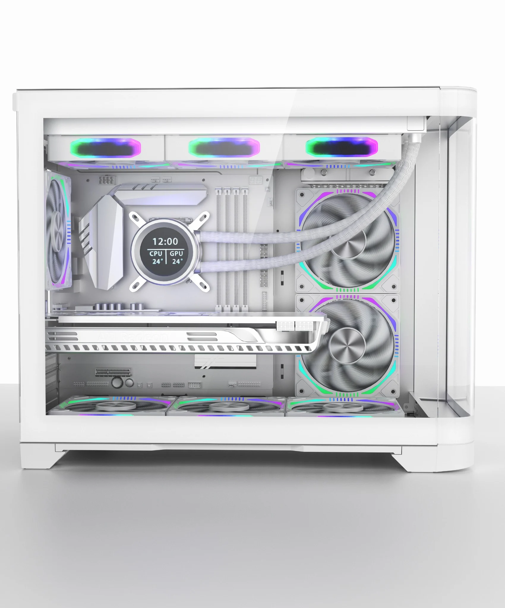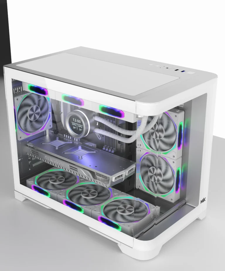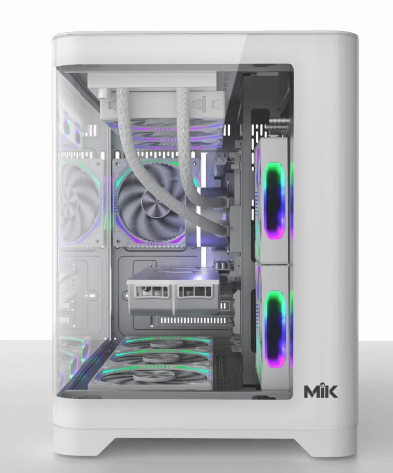 Là mẫu case dạng “bể cá”, MIK FOCALORS M WHITE cho phép lắp tối đa 9 fan tản nhiệt, giúp luồng khí lưu thông tối ưu, giữ cho hệ thống hoạt động ổn định ngay cả khi chạy tải nặng. Đặc biệt, phần trên hỗ trợ lắp 3 fan 120mm hoặc bộ tản nhiệt nước 360mm – phù hợp cho các hệ thống cần giải pháp làm mát hiệu quả.