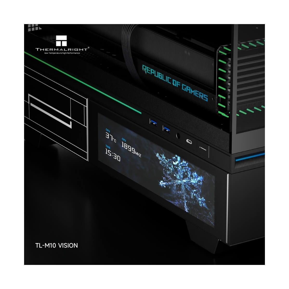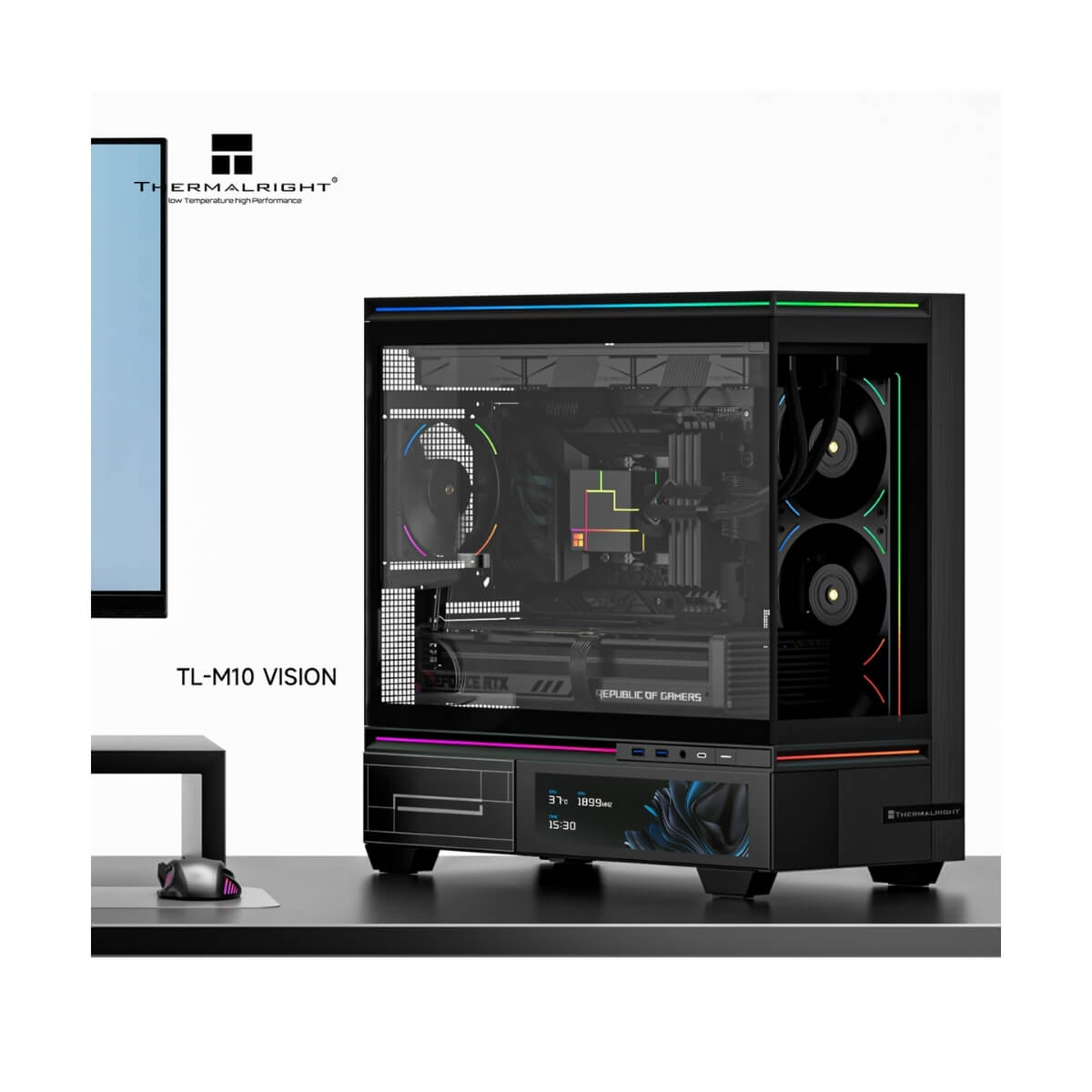 Case Thermalright M10 Vision Black TL-M10 VISION là sự kết hợp hoàn hảo giữa công nghệ hiện đại, thiết kế ấn tượng và khả năng hiển thị thông minh, dành cho những người đam mê cá nhân hóa dàn PC. Với màn hình LCD 9.16 inch tích hợp, khả năng tản nhiệt linh hoạt và không gian lắp đặt rộng rãi, mẫu case này là lựa chọn lý tưởng cho người dùng yêu thích hiệu ứng thị giác và hiệu năng mạnh mẽ.