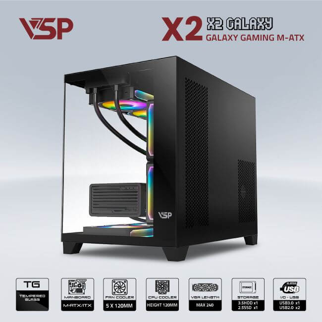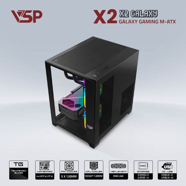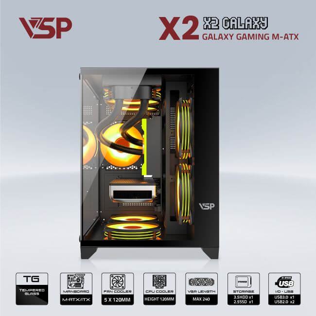 Case VSP Aquanaut X2 Galaxy M-ATX ( Đen/Black ) ( No Fan)