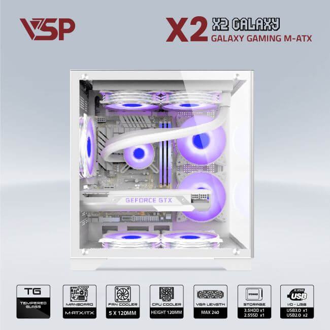 Case VSP Aquanaut X2 Galaxy M-ATX ( Trắng/White ) (No Fan)