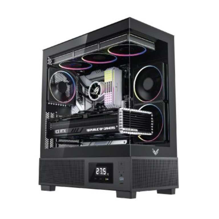 Đáp ứng mọi nhu cầu build PC gaming chất lượng cao, VSP X3 Pro Gamer Edition Monitor là mẫu case nổi bật với thiết kế mạnh mẽ, hiện đại, mặt kính đôi sang trọng cùng màn hình hiển thị nhiệt độ tích hợp cực kỳ tiện lợi. Nếu bạn đang tìm kiếm một thùng máy cứng cáp, thẩm mỹ và hỗ trợ tản nhiệt tối đa, thì đây chính là lựa chọn đáng cân nhắc. Hiện sản phẩm đang được phân phối chính hãng tại Nguyễn Thuận Computer với mức giá rất cạnh tranh.