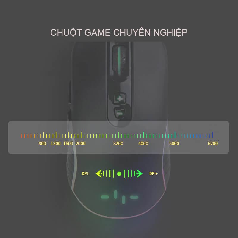 Các mức DPI gồm 800 / 1200 / 1600 / 2000 / 6200 có thể tùy chỉnh, phần mềm cho phép đặt lại DPI với mỗi lần điều chỉnh là 100 DPI.