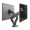 Tay đỡ màn hình F160 có thể lắp ở cạnh bàn hoặc grommet tại bất kỳ vị trí nào trên bàn làm việc. Phụ kiện này hỗ trợ xoay 180 độ để chia sẻ thông tin hoặc xoay 90 độ để hiển thị hình ảnh ngược. Sản phẩm được làm từ hợp kim nhôm và nhựa, với quản lý cáp tích hợp giúp gọn gàng.