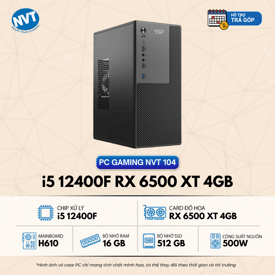 GÓC PC GAMING 104 i5 12400F | RAM 16GB | 512GB M2 | RX 6500 XT 4GB (T6/25)