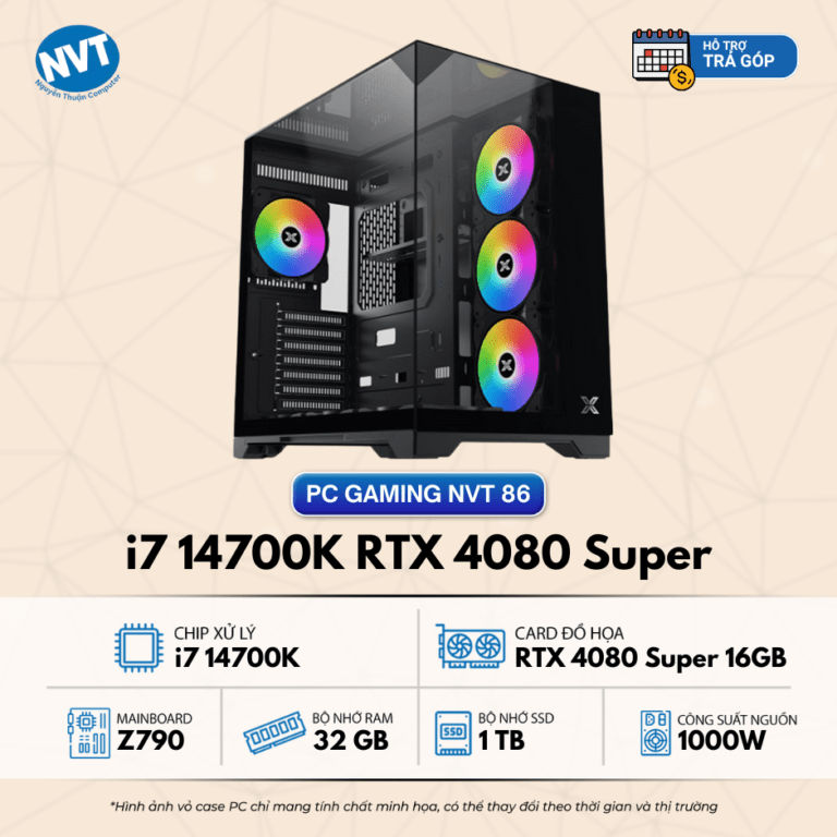 Góc PC Gaming NVT 86 – T2/2025 (Z790/ i7 14700F/ 32GB/ NVMe 1TB/ RTX 4080 Super 16GB/ 1000W/ LCD 27inch 180Hz)