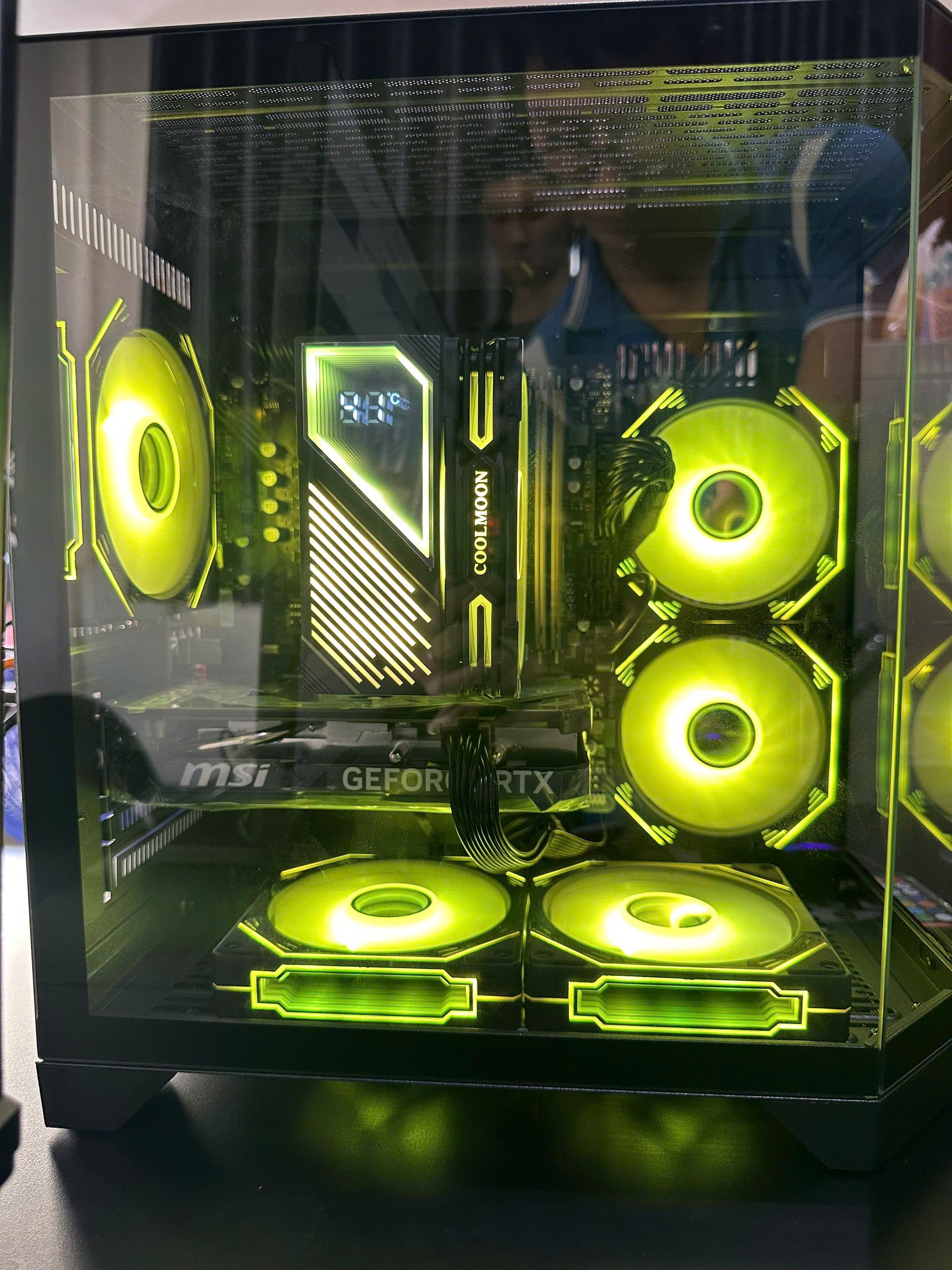 Coolmoon GT400 trang bị 4 ống đồng 6 mm, mặt tiếp xúc đồng nguyên khối, quạt 120 mm vòng LED ARGB kèm màn LED digital hiển thị nhiệt độ/ RPM thời gian thực. Khả năng tản khoảng 200 W TDP – dư cho i5-13400F chạy Turbo liên tục mà vẫn mát và êm.
