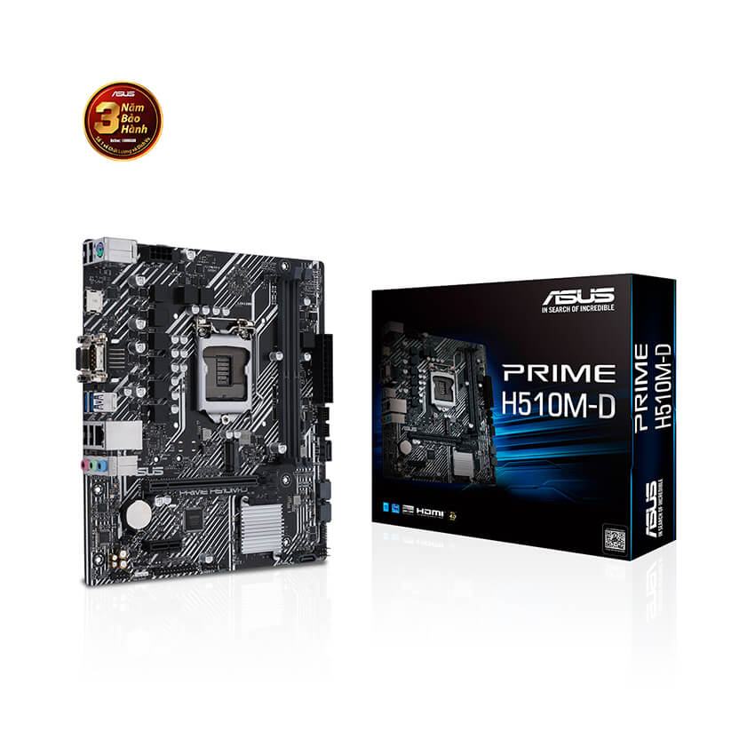 Mainboard ASUS PRIME H510 M-D là bo mạch chủ Entry-Level của Asus, trang bị chipset H510 mới nhất, hỗ trợ CPU i3, i5 và i7 socket LGA 1200 (Thế hệ Intel Core i 10 và 11).
