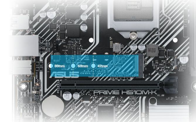 Bo mạch chủ PRIME H510 M-K được tích hợp SafeSlot Core + là khe cắm PCIe độc quyền của ASUS. Với thiết kế vững chắc được gắn vào bo mạch chủ thông qua một móc đặc biệt, Safeslot Core cung cấp khả năng duy trì mạnh hơn 1,6 lần và khả năng chống sốc lớn hơn 1,3 lần so với các khe cắm mở rộng tiêu chuẩn.