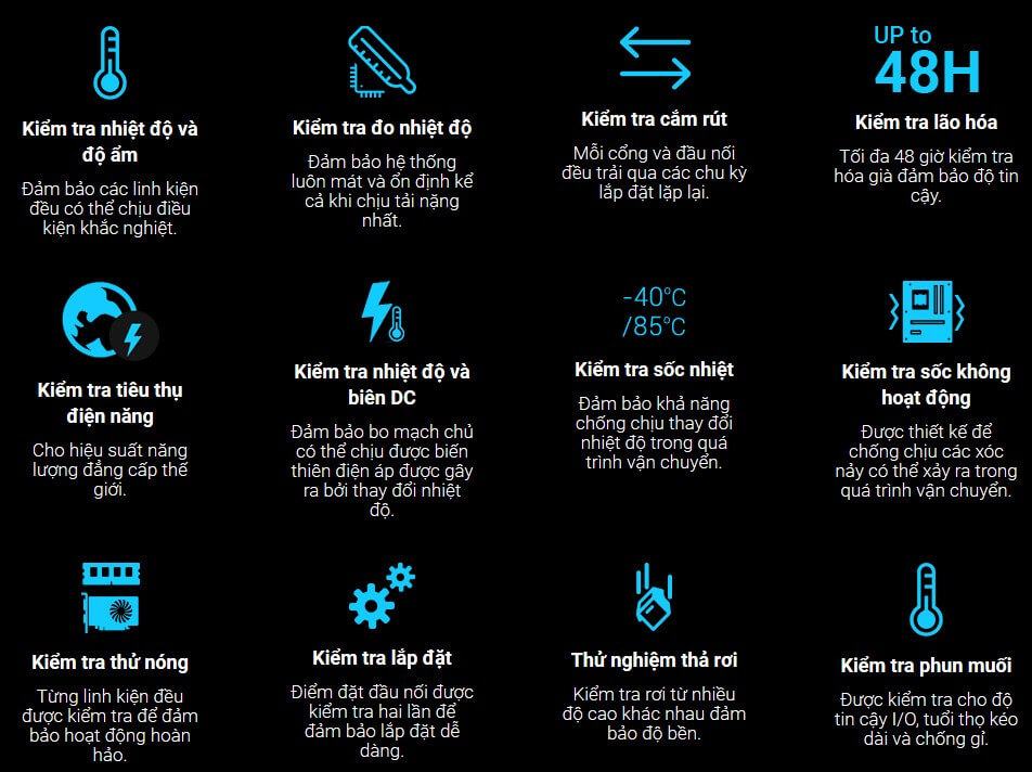 Mỗi bo mạch chủ ASUS PRIME H510 M-K đều phải vượt qua hơn 8.000 giờ thử nghiệm khắc nghiệt, Độ tin cậy của sản phẩm vượt xa các tiêu chuẩn quốc tế, đảm bảo rằng mọi thành phần bo mạch chủ được thiết kế để làm việc tốt trong mọi điều kiện.