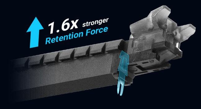 Khe cắm M. 2 hỗ trợ tốc độ truyền dữ liệu lên đến 32 Gbps với băng thông x4 PCI Express® 3.0, cho phép tốc độ truyền và tải dữ liệu nhanh hơn với hệ điều hành hoặc ổ đĩa tương thích.
