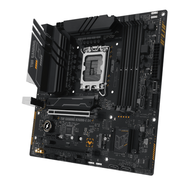 Asus TUF Gaming B760M-E DDR4 là bo mạch chủ chuẩn M-ATX, được thiết kế dành riêng cho các game thủ và người dùng phổ thông yêu thích sự ổn định và độ bền vượt trội. Kế thừa tinh thần của dòng TUF Gaming, sản phẩm không chỉ sở hữu thiết kế mạnh mẽ với tông màu đen-xám chủ đạo, mà còn được trang bị linh kiện chuẩn quân đội và hệ thống tản nhiệt tối ưu giúp hệ thống vận hành ổn định suốt thời gian dài.