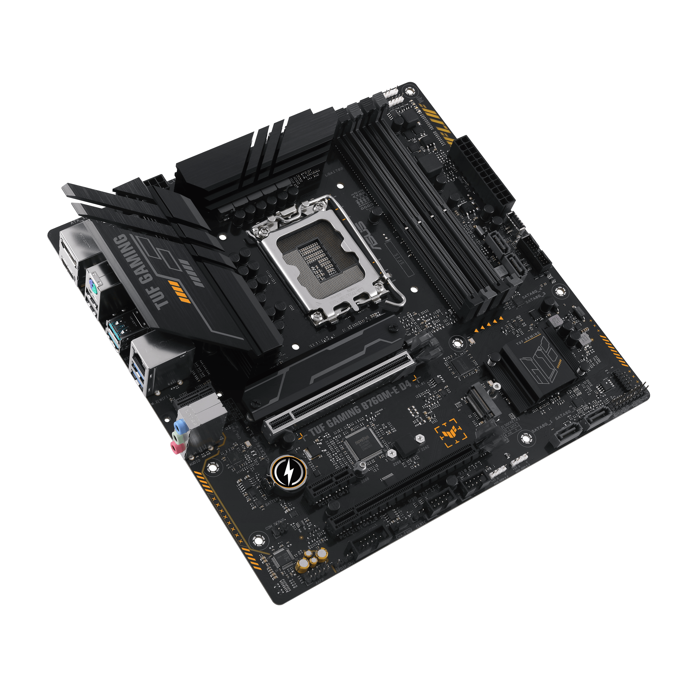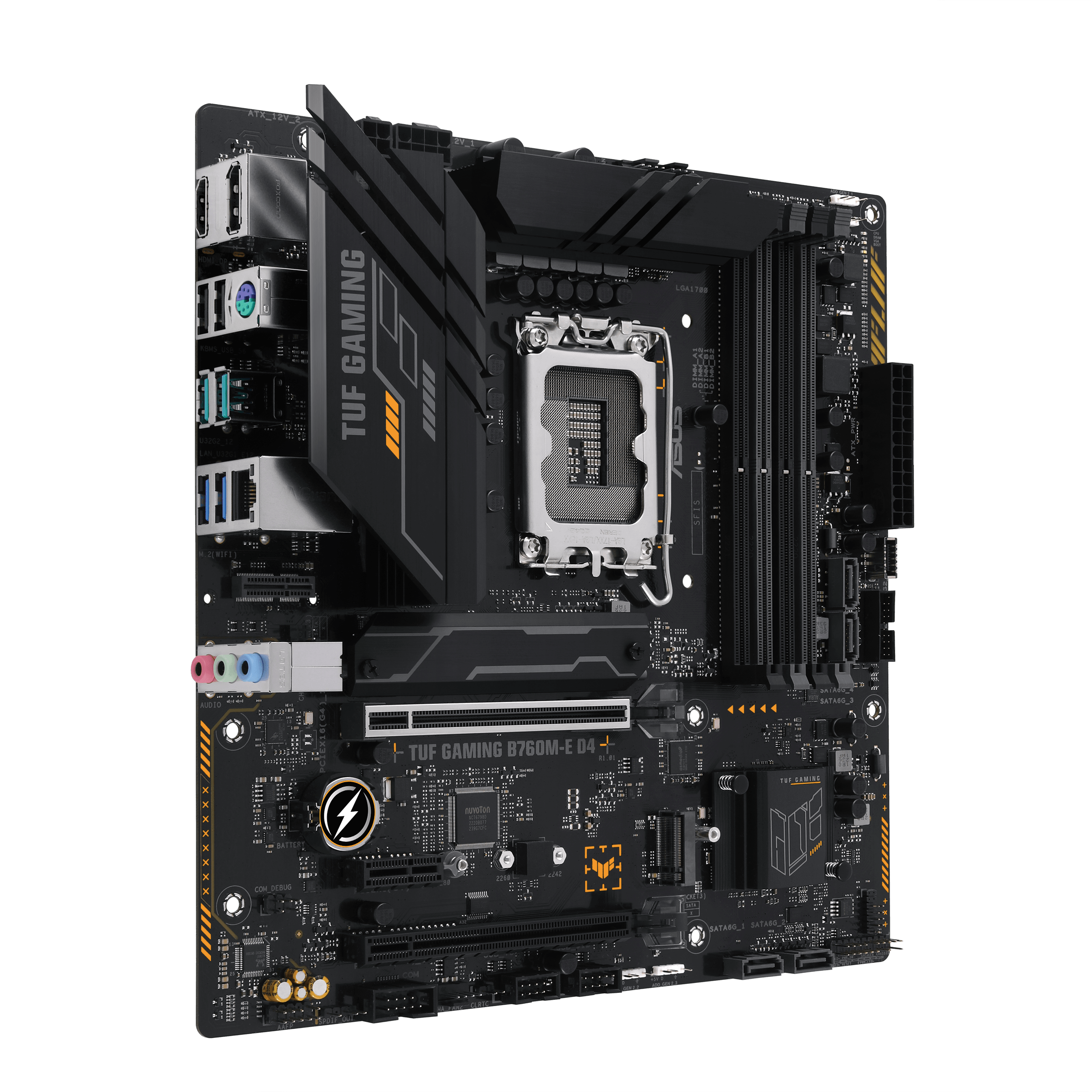 Asus TUF Gaming B760M-E DDR4 là bo mạch chủ chuẩn M-ATX, được thiết kế dành riêng cho các game thủ và người dùng phổ thông yêu thích sự ổn định và độ bền vượt trội. Kế thừa tinh thần của dòng TUF Gaming, sản phẩm không chỉ sở hữu thiết kế mạnh mẽ với tông màu đen-xám chủ đạo, mà còn được trang bị linh kiện chuẩn quân đội và hệ thống tản nhiệt tối ưu giúp hệ thống vận hành ổn định suốt thời gian dài.