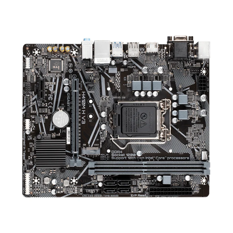 Mainboard GIGABYTE H410 M-H V3 cũng hỗ trợ Ram với 2 khe DDR4 có dung lượng bộ nhớ tối đa 64GB mang tới hiệu suất tối ưu cho người dùng. H410 M-H V3 phù hợp để sử dụng với Intel Core i3 đến Core i5 nonK để có thể khai thác tối ưu hiệu năng của CPU nhà bạn.