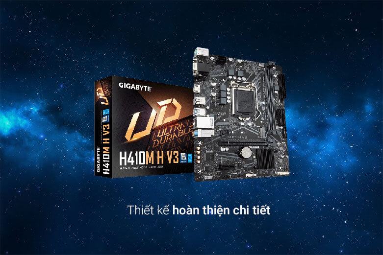 Mainboard GIGABYTE H410 M-H V3 được ra mắt với phiên bản V3 và được nhà Gigabyte nâng cấp với chipset H510 mang tới sự cải tiến mới mẽ, hiệu năng làm việc cũng lên tầm cao mới. Nhờ vậy mang tới cho người dùng những trải nghiệm tối ưu, giúp nâng cao hiệu suất công việc của bạn với mainboard GIGABYTE H410 M-H V 3.