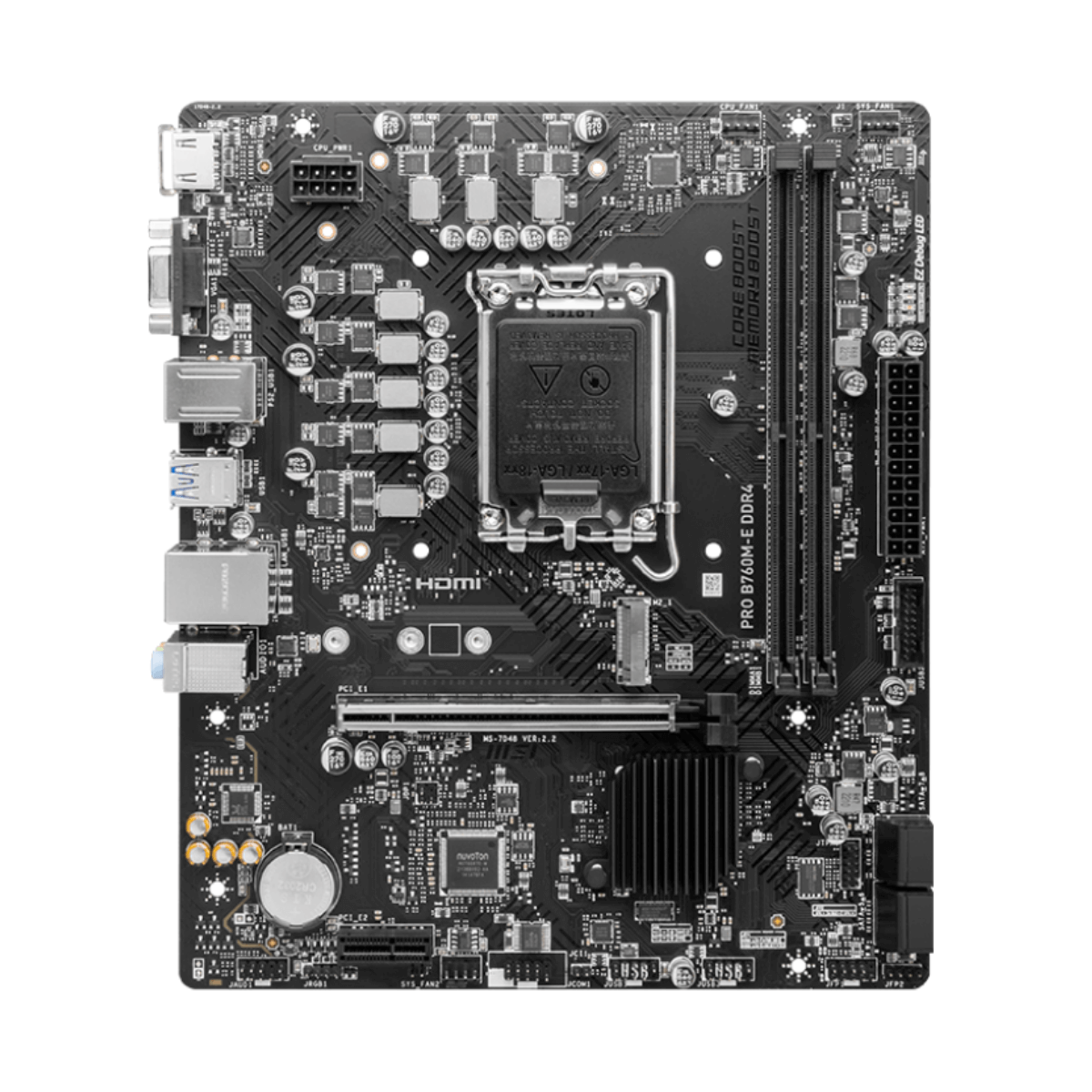 Mainboard được trang bị chipset Intel B760 hỗ trợ socket LGA 1700, tương thích với các dòng CPU Intel Core thế hệ thứ 12 và 13. B760 là chipset thế hệ mới, tích hợp đầy đủ các công nghệ hiện đại như hỗ trợ RAM DDR4, PCIe 4.0, cổng USB tốc độ cao và kết nối mạng Intel Gigabit LAN.
