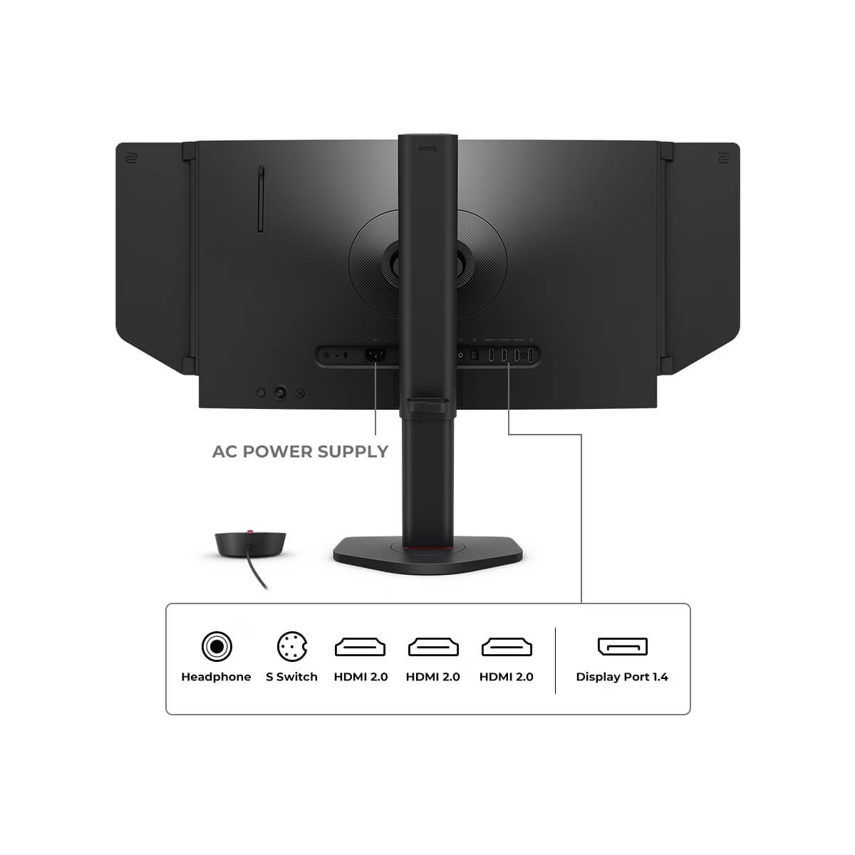 Màn hình PC BenQ Zowie XL2566X+ TN 24.1 Inch 400Hz DyAc 2 hỗ trợ tần số quét lên đến 400Hz qua cổng DisplayPort 1.4 và 120Hz qua HDMI 2.0, đảm bảo chuyển động siêu mượt và loại bỏ hiện tượng xé hình. Đây là yếu tố then chốt giúp bạn luôn đi trước đối thủ một bước trong các tựa game yêu cầu tốc độ phản xạ cao như CS:GO, Valorant, hoặc Apex Legends.