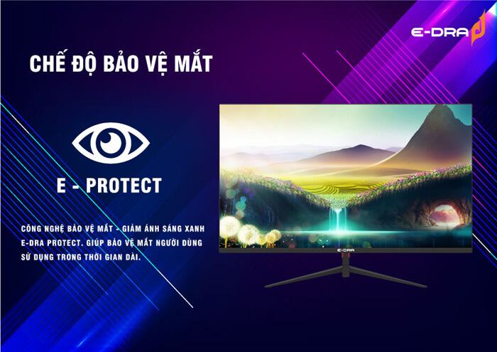 Công nghệ bảo vệ mắt EDRA PROTECT giúp giảm ánh sáng xanh, bảo vệ người dùng khỏi tác động tiêu cực khi sử dụng màn hình trong thời gian dài.