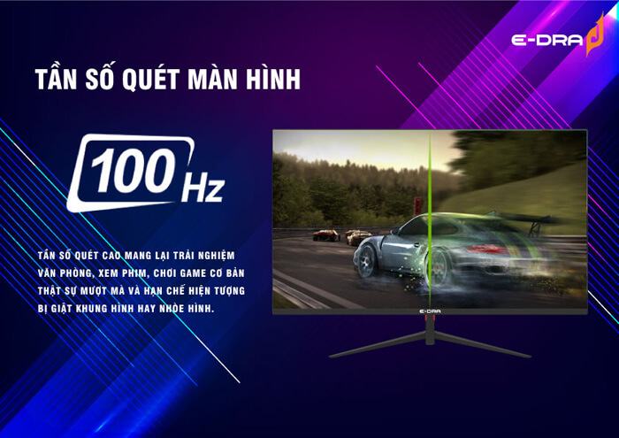 Để phù hợp với vai trò màn hình Gaming, EDRA – EGM24F100s được trang bị tần số quét lên tới 75Hz. Tần số quét cao không chỉ cải thiện trải nghiệm chơi game mà còn làm cho công việc văn phòng hay các hoạt động giải trí trở nên mượt mà hơn, giảm thiểu hiện tượng giật hình và nhòe hình.