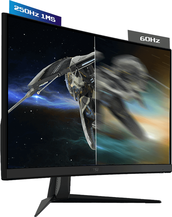 Hầu hết màn hình MSI đều trang bị bảng điều khiển VA LED với tốc độ làm mới 250Hz và thời gian đáp ứng 1ms, rất thích hợp cho các thể loại game hành động nhanh như bắn súng góc nhìn thứ nhất, phi công chiến đấu, chiến lược thời gian thực và thể thao. Những trò chơi này yêu cầu chuyển động nhanh và chính xác, và tốc độ làm mới cao cùng thời gian phản hồi nhanh giúp giảm thiểu hiện tượng nhòe khi di chuyển, đưa bạn vào lợi thế so với đối thủ.