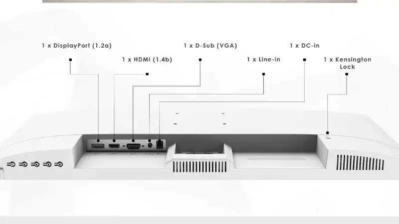 • Cổng kết nối: 1x DisplayPort (1.2a), 1x HDMI™ (1.4b), 1x D-Sub (VGA)