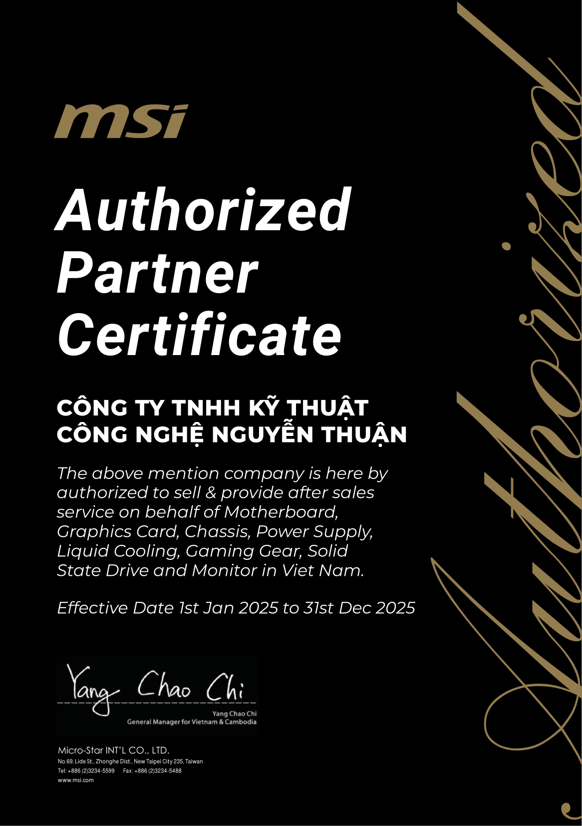 Nguyễn Thuận Computer tự hào là một trong những đơn vị phân phối các sản phẩm màn hình chính hãng đến từ thương hiệu MSI tại thị trường Việt Nam. Khi đến với Nguyễn Thuận Computer, bạn hoàn toàn có thể yên tâm lựa chọn màn hình máy tính chất lượng, đi kèm chính sách bảo hành chính hãng lên đến 36 tháng – đảm bảo quyền lợi tối đa cho người tiêu dùng.