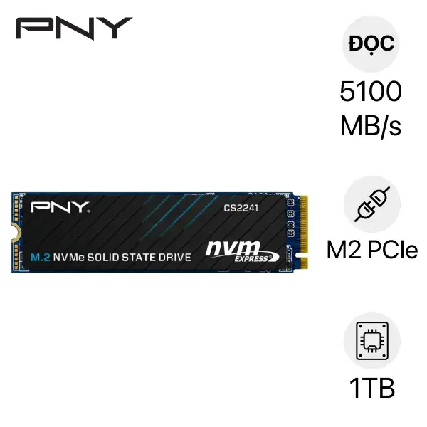 Ổ cứng SSD PNY CS2241 M. 2 2280 NVMe PCIe Gen 4 × 4 1TB là một lựa chọn xuất sắc cho việc cải thiện hiệu suất trên máy tính hoặc laptop hỗ trợ NVMe Gen 4. Với tốc độ đọc lên đến 5.100 MB/s và tốc độ ghi tuần tự 4.200 MB/s, sản phẩm này cung cấp hiệu suất tuyệt vời, cho phép máy tính hoạt động trơn tru và ứng dụng khởi chạy nhanh chóng.