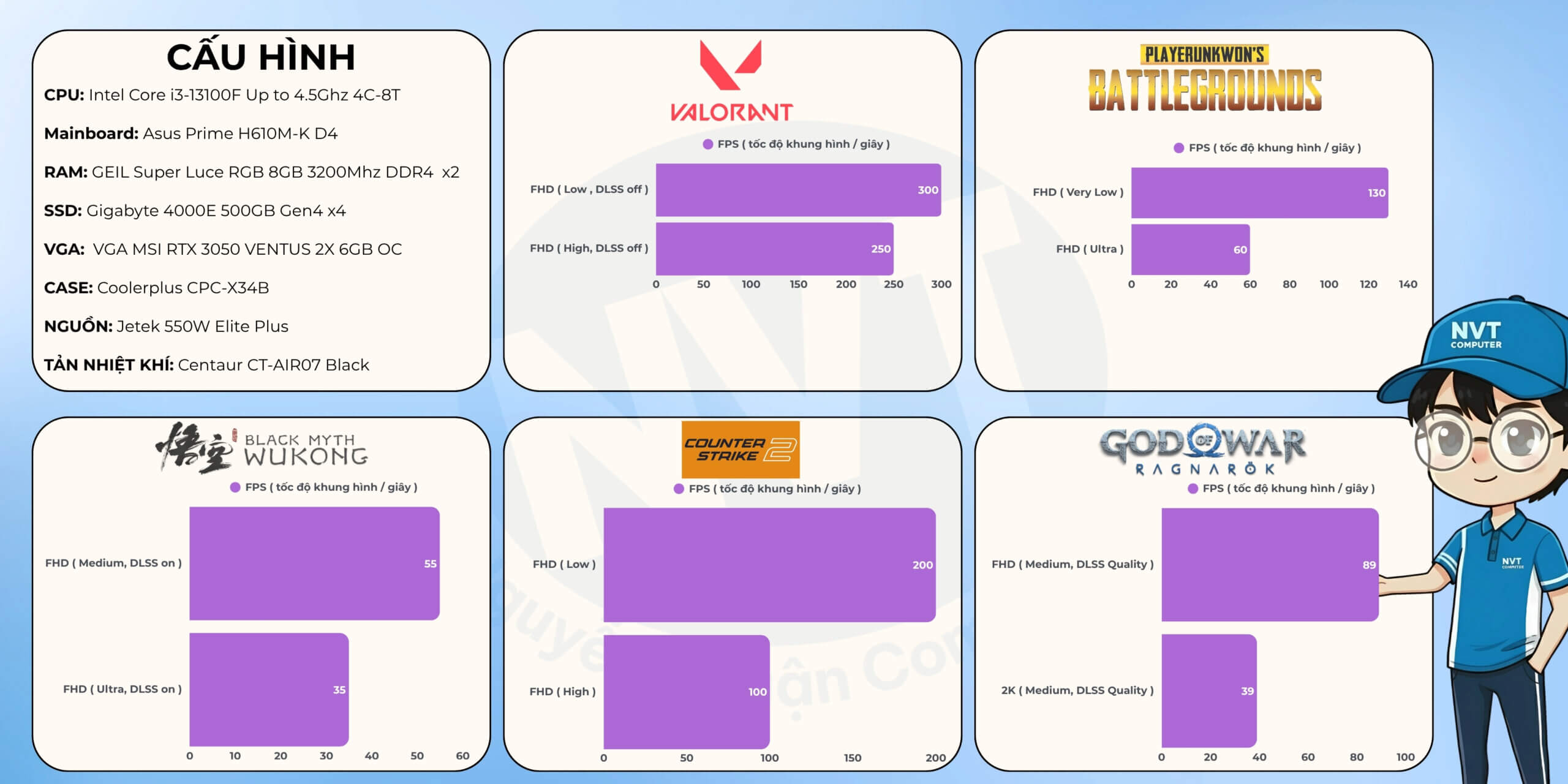 Lưu ý: Thông số FPS trên được đo trong điều kiện và cấu hình cụ thể, chỉ mang tính chất tham khảo. Hiệu năng thực tế có thể thay đổi tùy thuộc vào phiên bản game, driver, nhiệt độ và các yếu tố phần cứng/phần mềm khác.