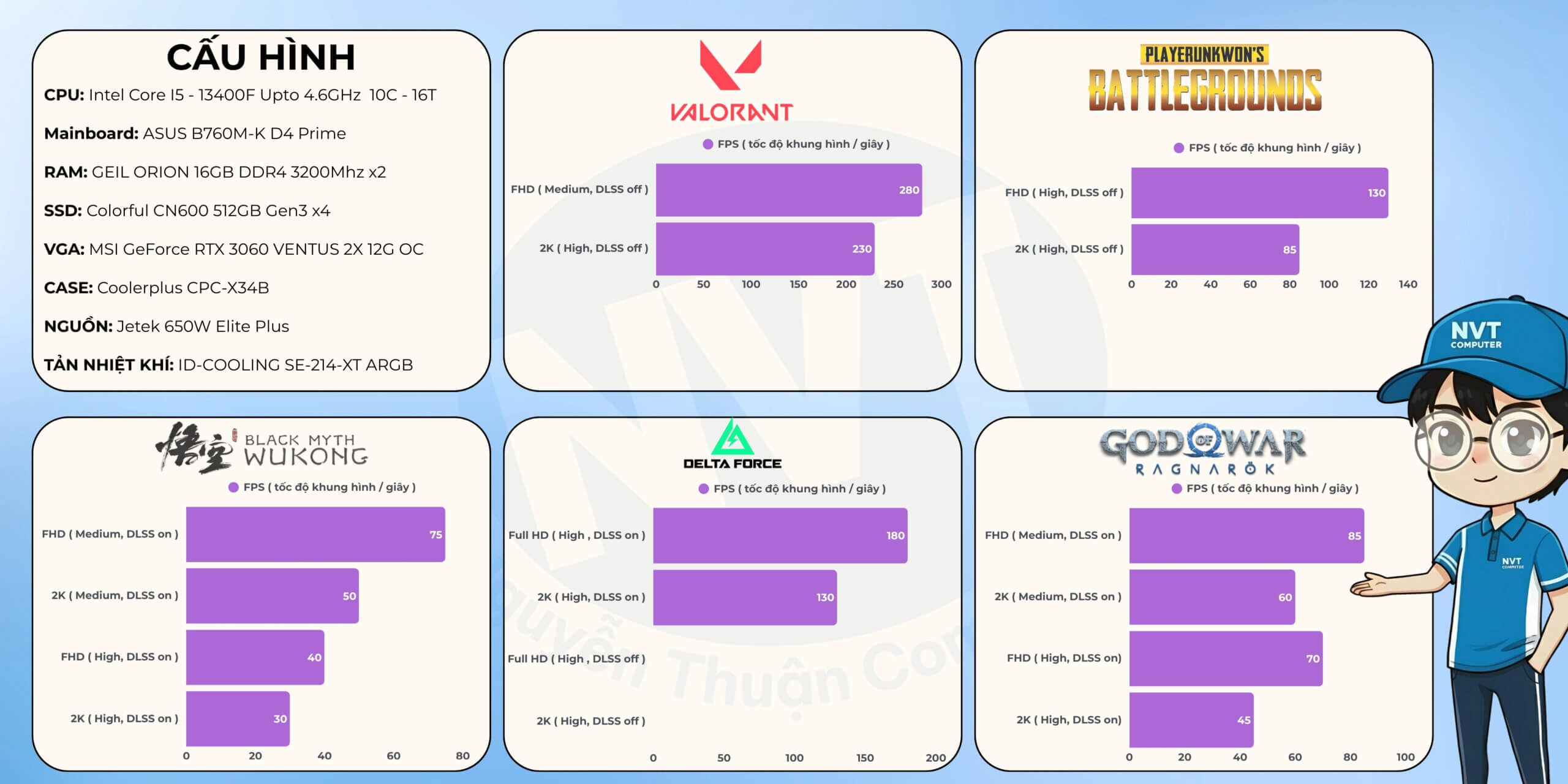 Lưu ý: Thông số FPS trên được đo trong điều kiện và cấu hình cụ thể, chỉ mang tính chất tham khảo. Hiệu năng thực tế có thể thay đổi tùy thuộc vào phiên bản game, driver, nhiệt độ và các yếu tố phần cứng/phần mềm khác.