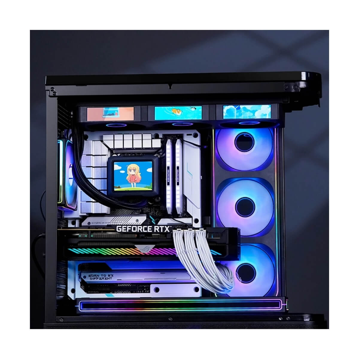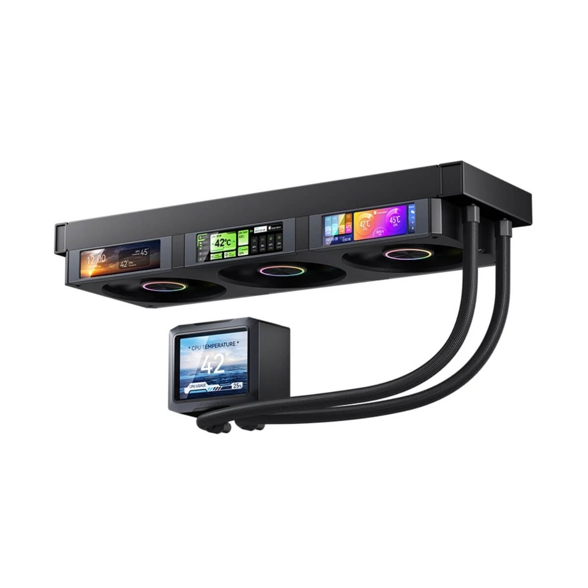 Điểm nhấn nổi bật của Jonsbo TF3-360SCB chính là màn hình IPS LCD kích thước 4 inch tích hợp trên bơm. Màn hình có thể hiển thị thông số hệ thống như nhiệt độ CPU, tốc độ quạt, hoặc cá nhân hóa với ảnh/logo tuỳ chỉnh thông qua kết nối USB – tăng tính tương tác và cá nhân hóa dàn máy theo phong cách riêng.