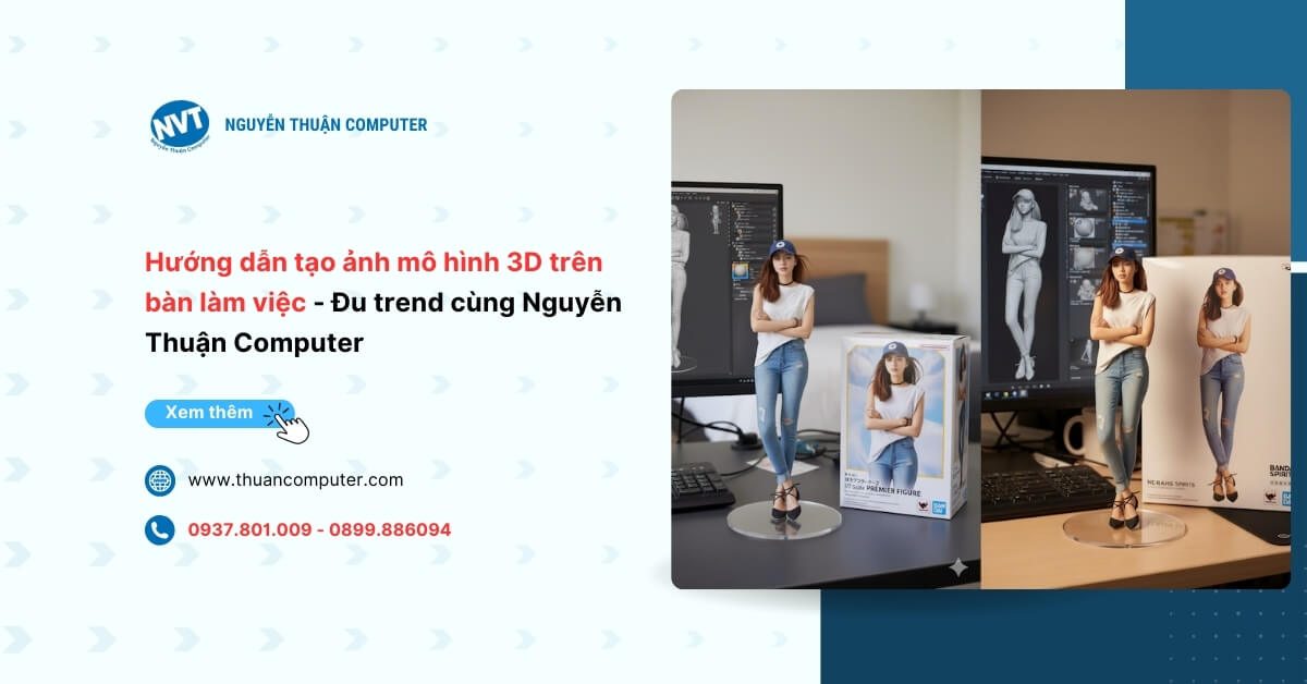 Hướng dẫn tạo ảnh mô hình 3D trên bàn làm việc – Đu trend cùng Nguyễn Thuận Computer
