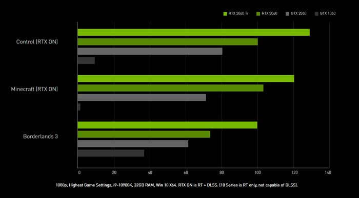 NVIDIA DLSS là công nghệ kết xuất tiên tiến. Nó sử dụng trí tuệ nhân tạo (AI) giúp tăng tốc độ khung hình lên ít nhất 1,5 lần mà không làm giảm chất lượng hình ảnh. Nhờ vào sức mạnh của nhân Tensor chuyên xử lý AI trên GeForce RTX, khả năng nâng cao hiệu suất càng thêm hiệu quả. Bạn có thể thiết lập các cài đặt và độ phân giải cao hơn để tận hưởng trải nghiệm hình ảnh tuyệt vời khi chơi game.