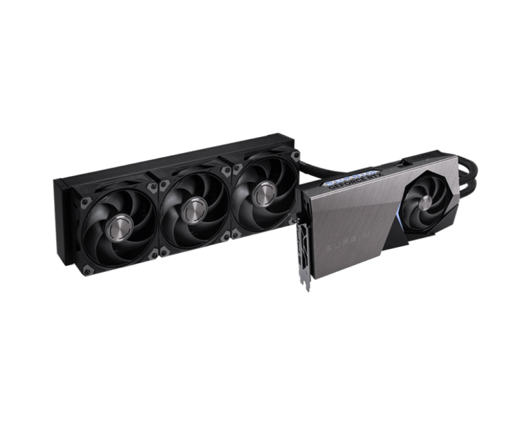 - Hệ thống làm mát Hybrid vượt trội: Thiết kế Hybrid sáng tạo của SUPRIM LIQUID kết hợp cả làm mát bằng không khí với quạt STORMFORCE và làm mát bằng chất lỏng để quản lý hiệu quả nhiệt độ từ GPU và VRAM.