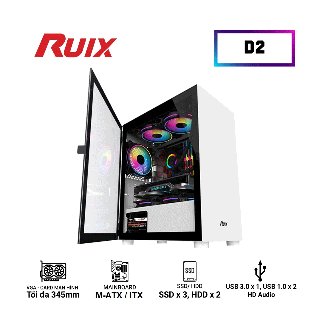 Vỏ Case Gaming RuiX (White/ Trắng) (No Fan)
