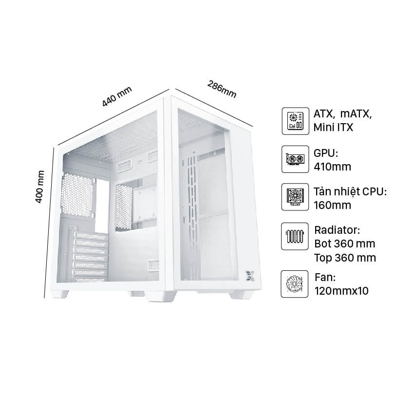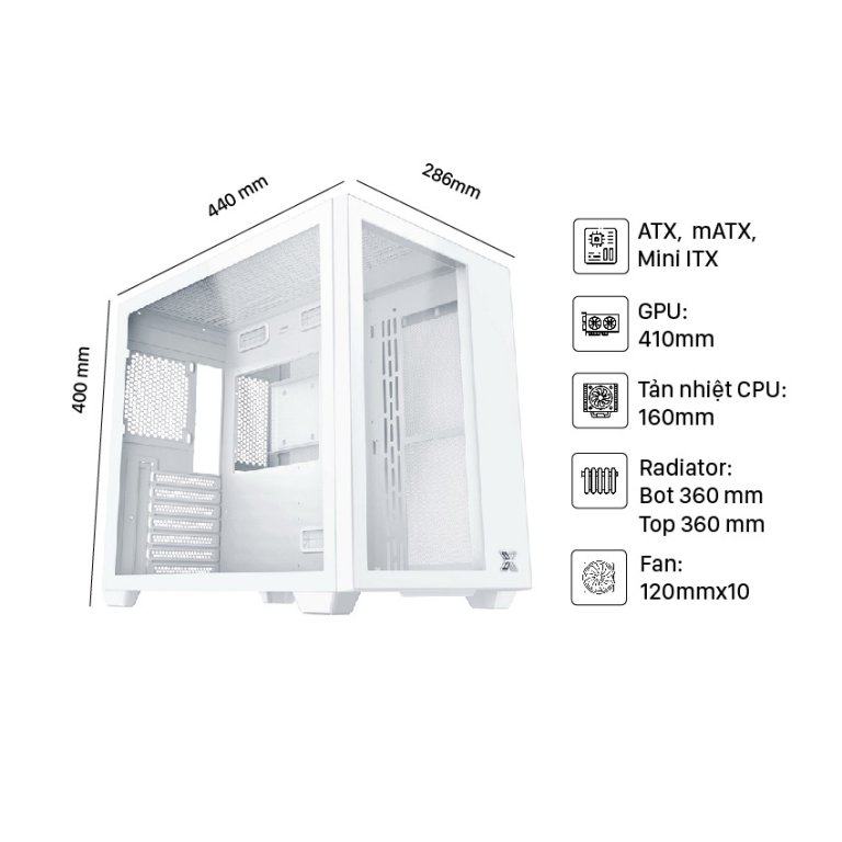 - Hỗ trợ Mainboard: ATX, Micro-ATX, ITX